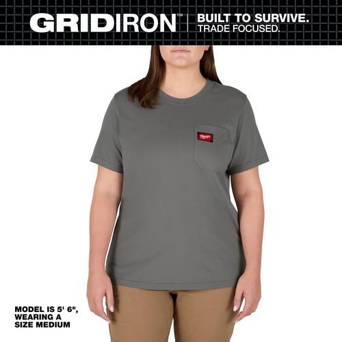 Women' GRIDIRON™ Pocket T-Shirt- Short Sleeve Gray 2X