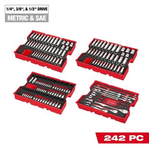 1/4”, 3/8”, & Drive Metric & SAE Ratchet & Socket Set with Trays for PACKOUT™ Drawers